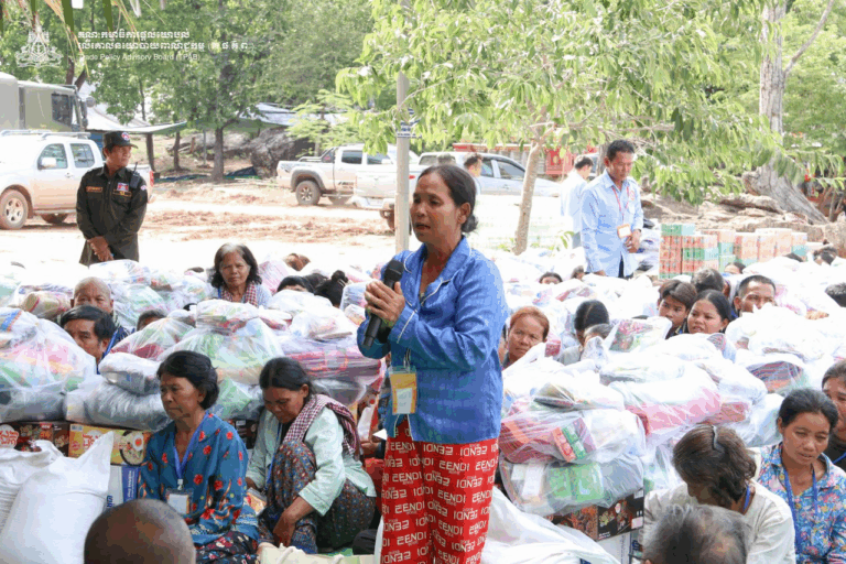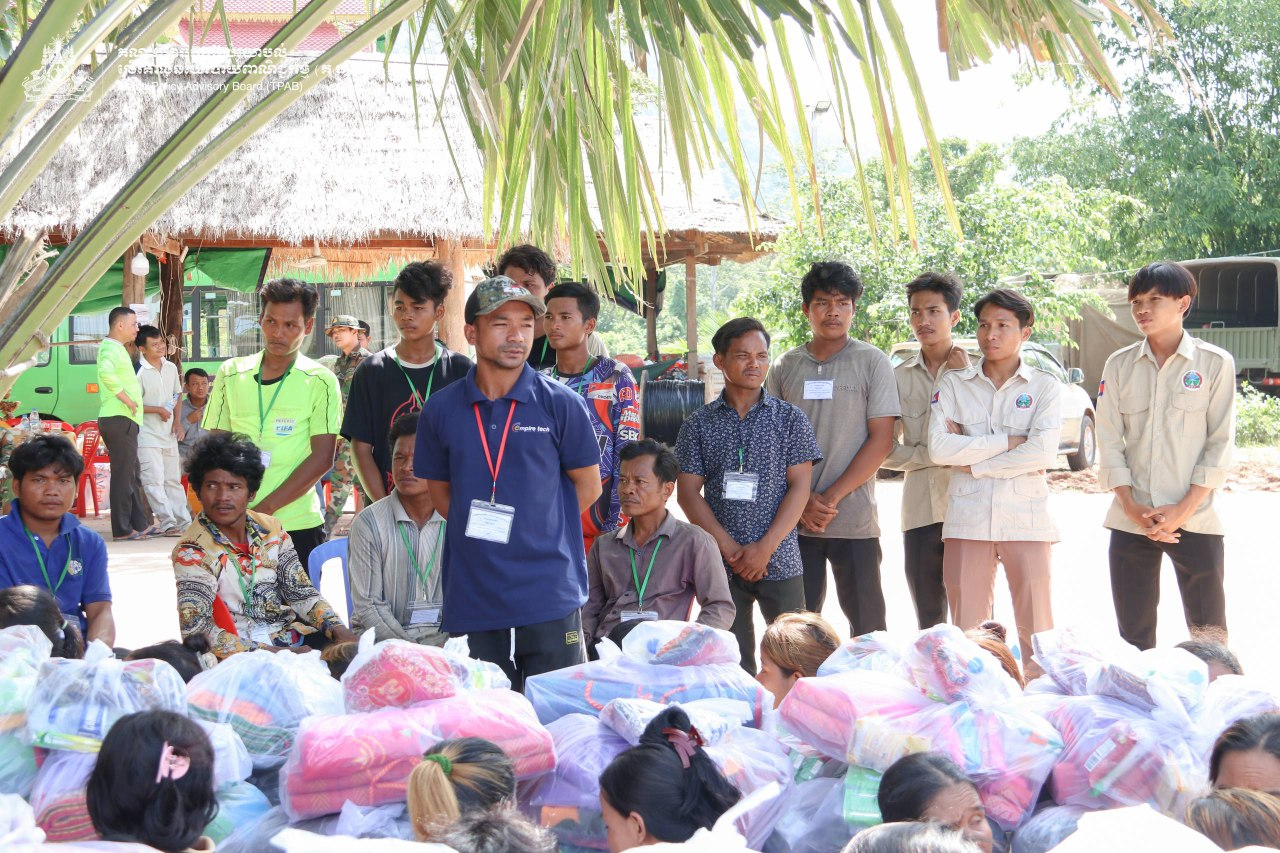 On August 01, 2025, H.E. Prof. Bundit Sapheacha Dr. SOK Siphana and LCT. Mrs. KHIEU Mealy, along with fellow philanthropists, with close coordination with relevants authorities, delivered a second round of humanitarian aid and essential supplies to Preah Vihear Province to support the displaced families and frontier troops. This followed an earlier delivery of initial aid and supplies to support displaced civilians on July 27, 2025. Total donations for over 250 displaced families includes (1) 5 tons of rice (20 kilograms per family); (2) 250 donation packages containing mosquito nets, blankets, medicines, vitamins, herbal balms, sarongs, dried fish, fermented fish paste, salt, and feminine hygiene products; (3) 250 packages of snacks for children and cashew nuts; (4) 250 cases of water; and (5) 250 cases of instant noodles. All displaced families also received additional assistance of 80,000 riels per family (totaling 20 million riel in cash). For our frontier soldiers, the aid includes (1) 2.5 tons of rice; (2) 380 bottles of vitamin supplements; (3) 250 cases of water (1.5-liter bottles); (4) 100 cases of Fanta and Sprite; (5) five cases of fresh bananas; (6) two cases of cashew nuts; (7) essential medicines; (8) one case of dried fish; (9) 68 sets of tents; and (10) fans. Taking this opportunity, Dr. SOK and the delegation also visited some of injured soldiers at the medical facilities in Siem Reap province.