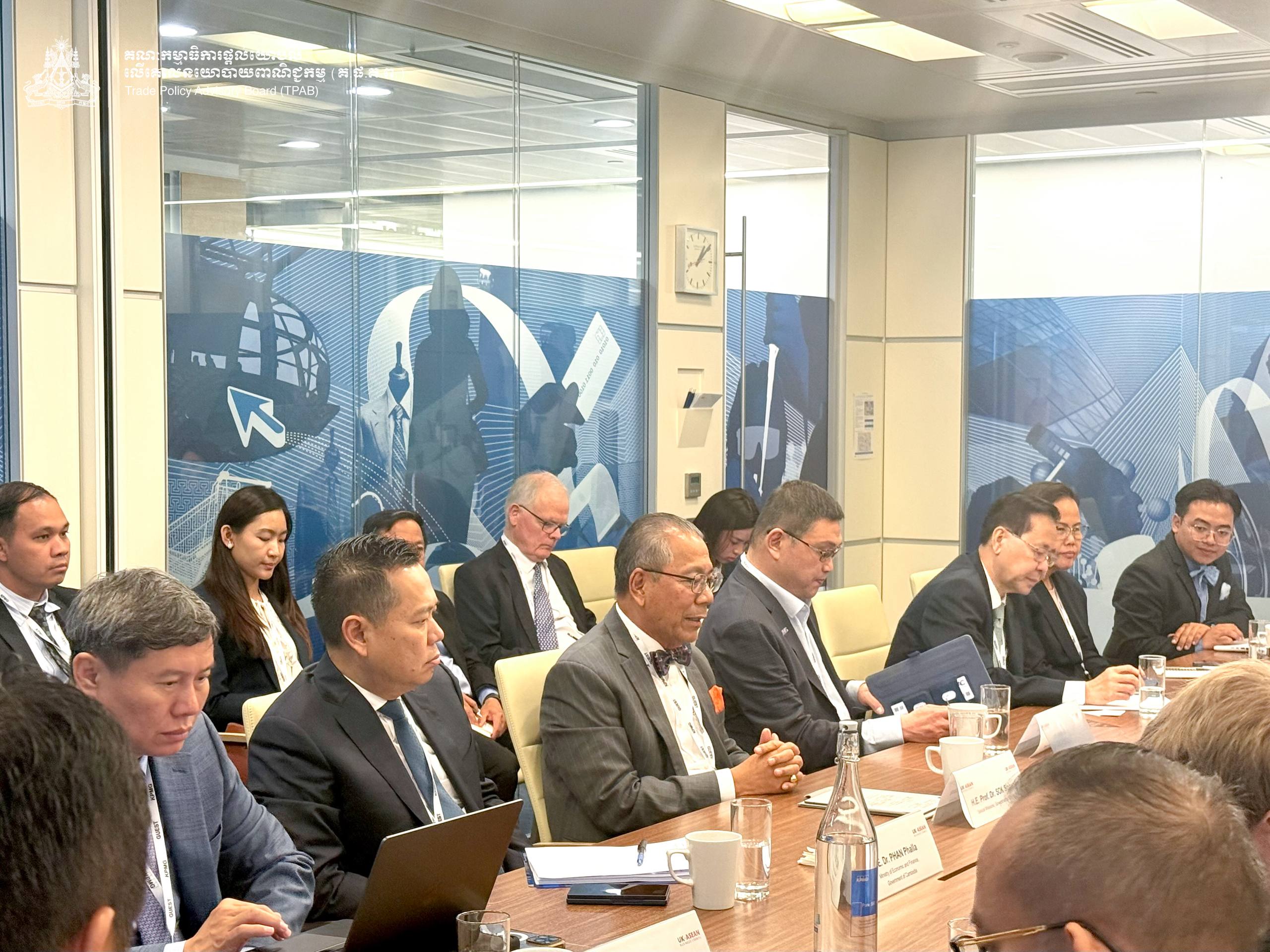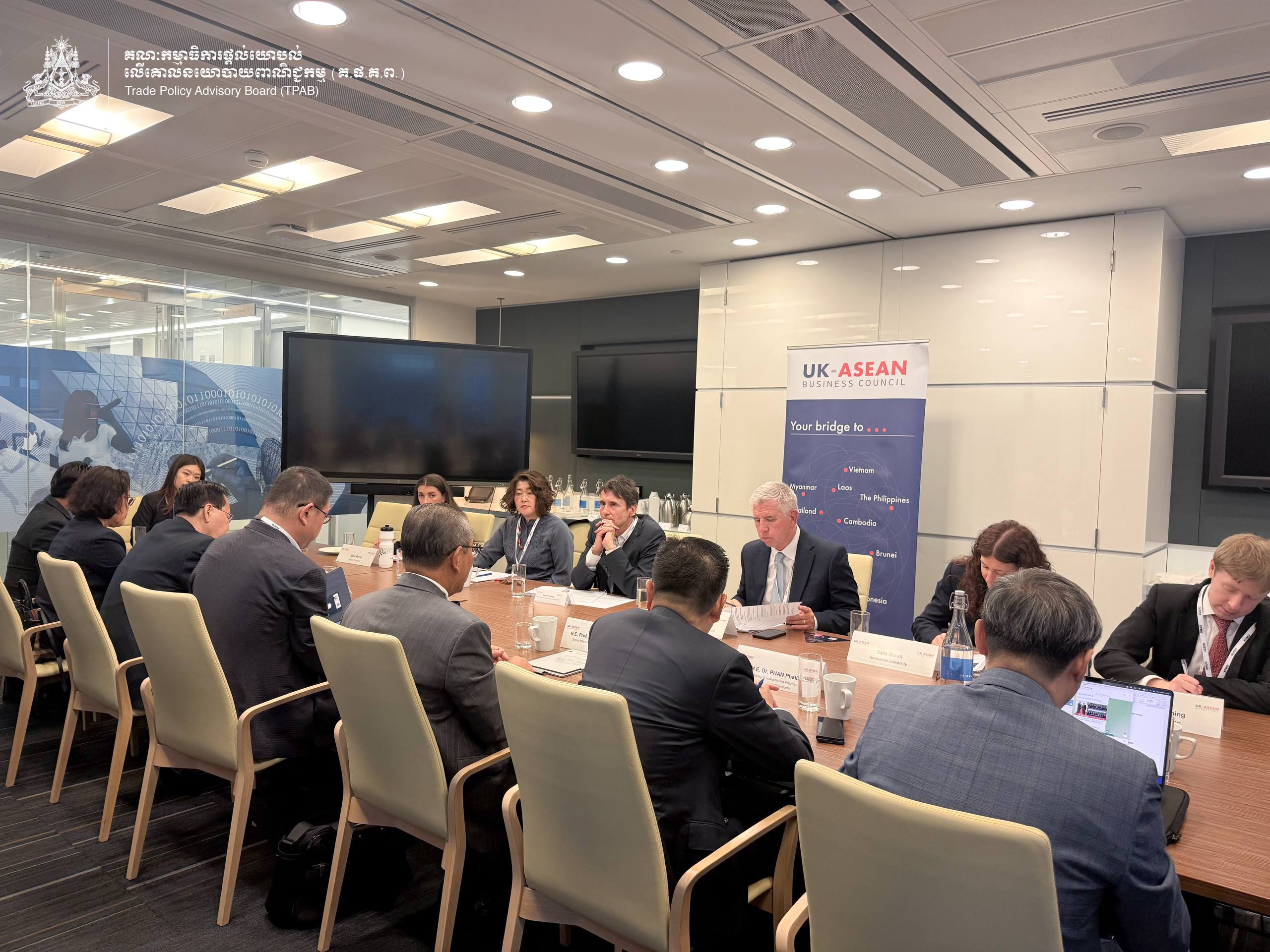 On 10 September 2025, H.E. Prof. Bundit Sapheacha Dr. Sok Siphana, Senior Minister in charge of Special Missions (Multilateral Trade and Economic Affairs), Chairman of the Trade Policy Advisory Board (TPAB), and Chairman of the Comprehensive and Progressive Agreement for Trans-Pacific Partnership (CP-TPP) Study Working Group, chaired a roundtable discussion with the UK-ASEAN Business Council (UKABC), in collaboration with KPMG UK, on the practical implications of Cambodia’s accession in the CP-TPP.