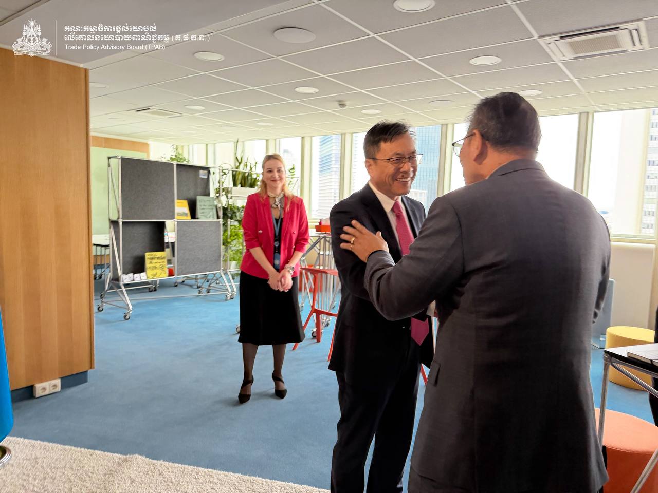 On 17 October 2025, H.E. Prof. Bundit Sapheacha Dr. SOK Siphana, Senior Minister in charge of Special Missions (Multilateral Trade and Economic Affairs) and Chairman of the Trade Policy Advisory Board (TPAB), held a meeting with Dr. Ciyong Zou, Deputy to Director General and Managing Director, Directorate of Technical Cooperation and Sustainable Industrial Development. The discussions centered on Cambodia’s preparedness for its forthcoming transition from the Least Developed Country (LDC) status, emphasizing the critical need for capacity strengthening and technical expertise to enhance standards in Cambodia’s key priority sectors.