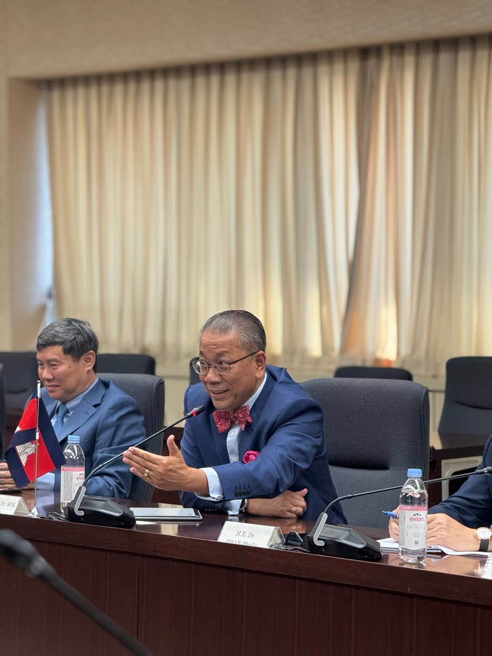 On 26 September 2025, H.E. Prof. Bundit Sapheacha Dr. Sok Siphana, Senior Minister in charge of Special Missions (Multilateral Trade and Economic Affairs), Chairman of the Trade Policy Advisory Board (TPAB), and Chairman of the Comprehensive and Progressive Agreement for Trans-Pacific Partnership (CP-TPP) Study Working Group, held a working session with Mr. TAMURA Hideyasu, Deputy Director-General for Trade Policy of the Trade Policy Bureau of the Ministry of Economy, Trade and Industry (METI).