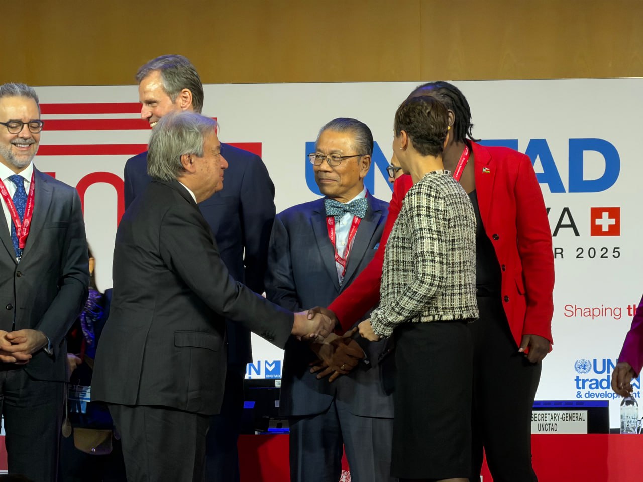 On 22 October 2025, H.E. Prof. Bundit Sapheacha Dr. SOK Siphana, Senior Minister in charge of Special Missions (Multilateral Trade and Economic Affairs), Chairman of the Trade Policy Advisory Board (TPAB), and High Representative of Samdech Moha Borvor Thipadei HUN Manet, Prime Minister of the Kingdom of Cambodia, attends the Special Address to the Conference by United Nations Secretary-General António Guterres and joins the Family Photo with the UN Secretary-General and Heads of Delegation at the 16th Session of the United Nations Conference on Trade and Development (UNCTAD 16), held at the Palais des Nations, Geneva, Switzerland.