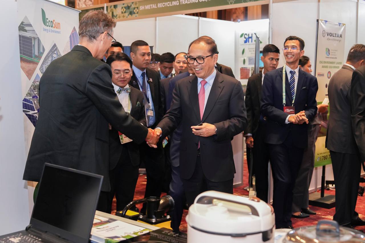 Following the ceremony, H.E. VONGSEY Vissoth, Permanent Deputy Prime Minister, joined a guided tour of the Green Investment Expo led by the TPAB Secretariat, where he visited numerous exhibits showcasing businesses and SMEs from various sectors highlighting green innovation and sustainable development initiatives.