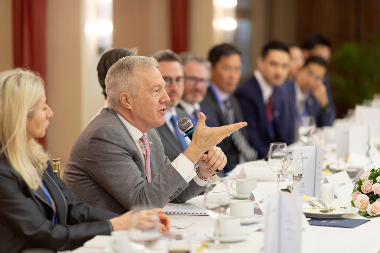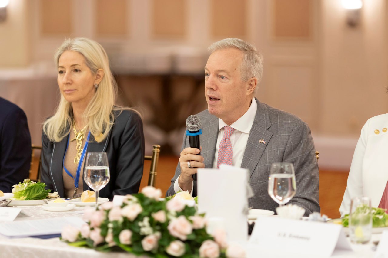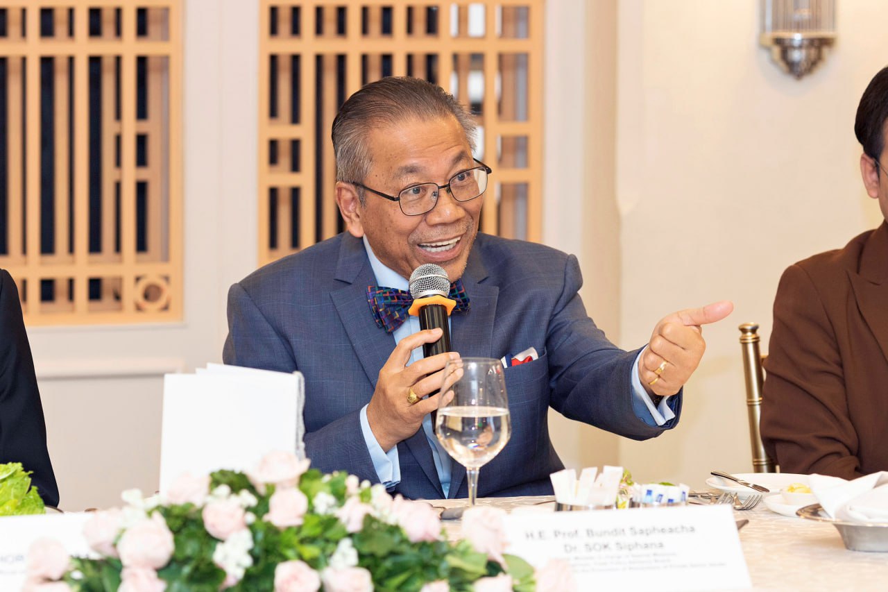 On 1 December 2025, H.E. Prof. Bundit Sapheacha Dr. SOK Siphana, Senior Minister in charge of Special Missions (Multilateral Trade and Economic Affairs) and Chairman of the Trade Policy Advisory Board (TPAB), attended a working luncheon with the delegation of the US-ASEAN Business Council, led by Amb. Ted Osius, Senior Vice President and Regional Managing Director of the US-ASEAN Business Council, and Head of Delegation, at Raffles Hotel Le Royal, Phnom Penh. The meeting was also attended by representatives from Abbott, Plug and Play, Coca Cola, ConocoPhillips, Ford, Mastercard, Manulife, Marriott International, Meta, RMA Group, Philip Morris International, Visa, Vriens and Partners, 3M, and US-ASEAN Business Council.