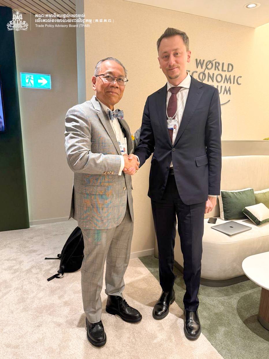 On 21 January 2026, H.E. Prof. Bundit Sapheacha Dr. SOK Siphana, Senior Minister in charge of Special Missions (Multilateral Trade and Economic Affairs) and Chairman of the Trade Policy Advisory Board (TPAB), held a bilateral meeting with H.E. Oleksii SOBOLEV, Minister of Economy, Environment and Agriculture of Ukraine. The discussion focused on enhancing cooperation in the agricultural sector, with both sides exploring opportunities for technical collaboration.