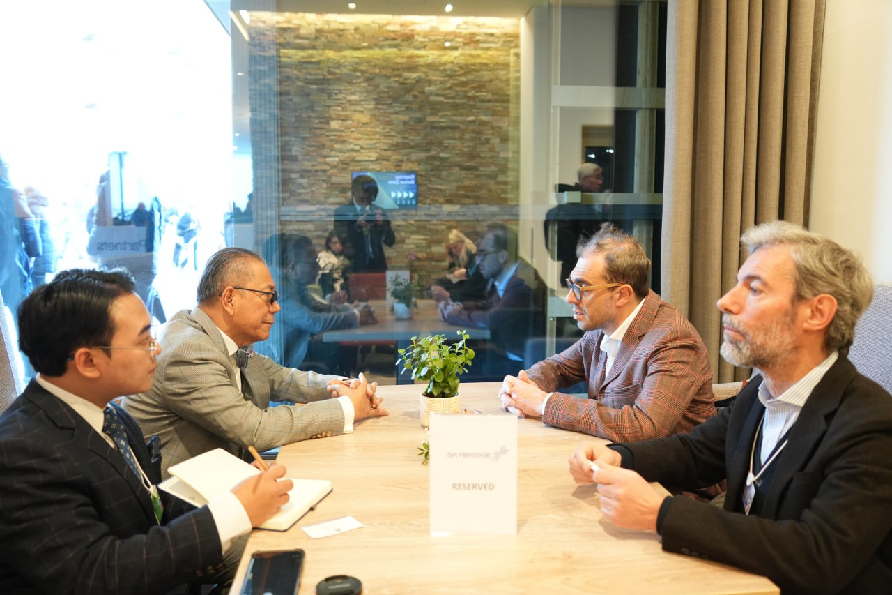 On 21 January 2026, H.E. Prof. Bundit Sapheacha Dr. SOK Siphana, Senior Minister in charge of Special Missions (Multilateral Trade and Economic Affairs) and Chairman of the Trade Policy Advisory Board (TPAB), held a bilateral meeting with Mr. Enrico Polegato Moretti, Deputy Chairman and Executive Director of Geox Group, in Davos, Switzerland.