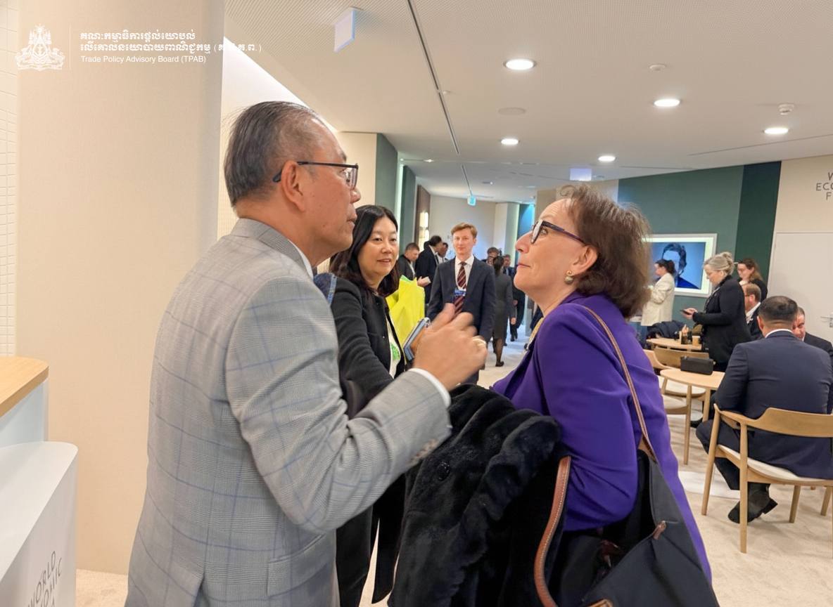 During the participation at the World Economic Forum Annual Meeting 2026 in Davos, Switzerland, on January 21, 2026, H.E. Prof. Bundit Sapheacha Dr. Sok Siphana, Senior Minister in charge of Special Missions (Multilateral Trade and Economic Affairs) and Chairman of the Trade Policy Advisory Board (TPAB), held a discussion with H.E. Dr. Ngozi Okonjo-Iweala, Director-General of the World Trade Organization (WTO), and H.E. Rebeca Grynspan, Secretary-General of the United Nations for Trade and Development (UNCTAD), at the World Economic Forum Annual Meeting 2026.