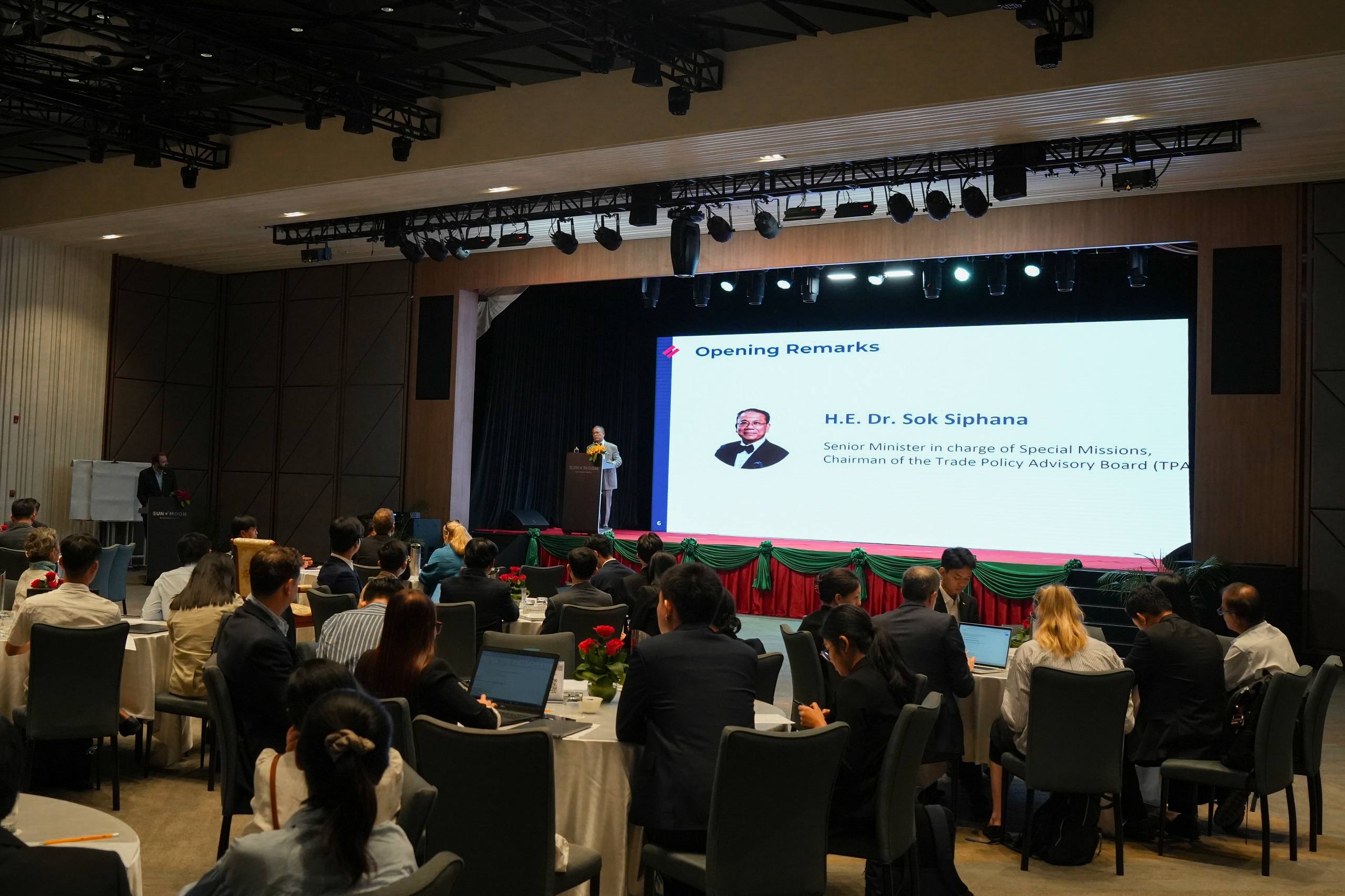 On February 18, 2026, H.E. Prof. Bundit Sapheacha Dr. SOK Siphana, Senior Minister in charge of Special Missions (Multilateral Trade and Economic Affairs) and Chairman of the Trade Policy Advisory Board (TPAB), presided over and delivered the opening remarks at the workshop on “Navigating Deforestation-Free Value Chains and Emerging Due Diligence Requirements.” The event was co-organized by the European Union Delegation to Cambodia, the International Trade Centre (ITC), TPAB, EuroCham Cambodia, and GIZ.