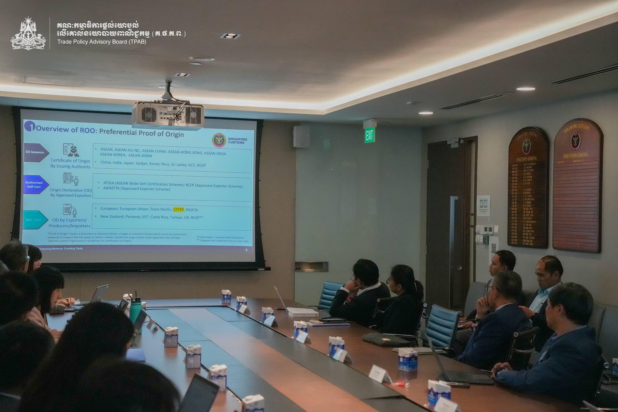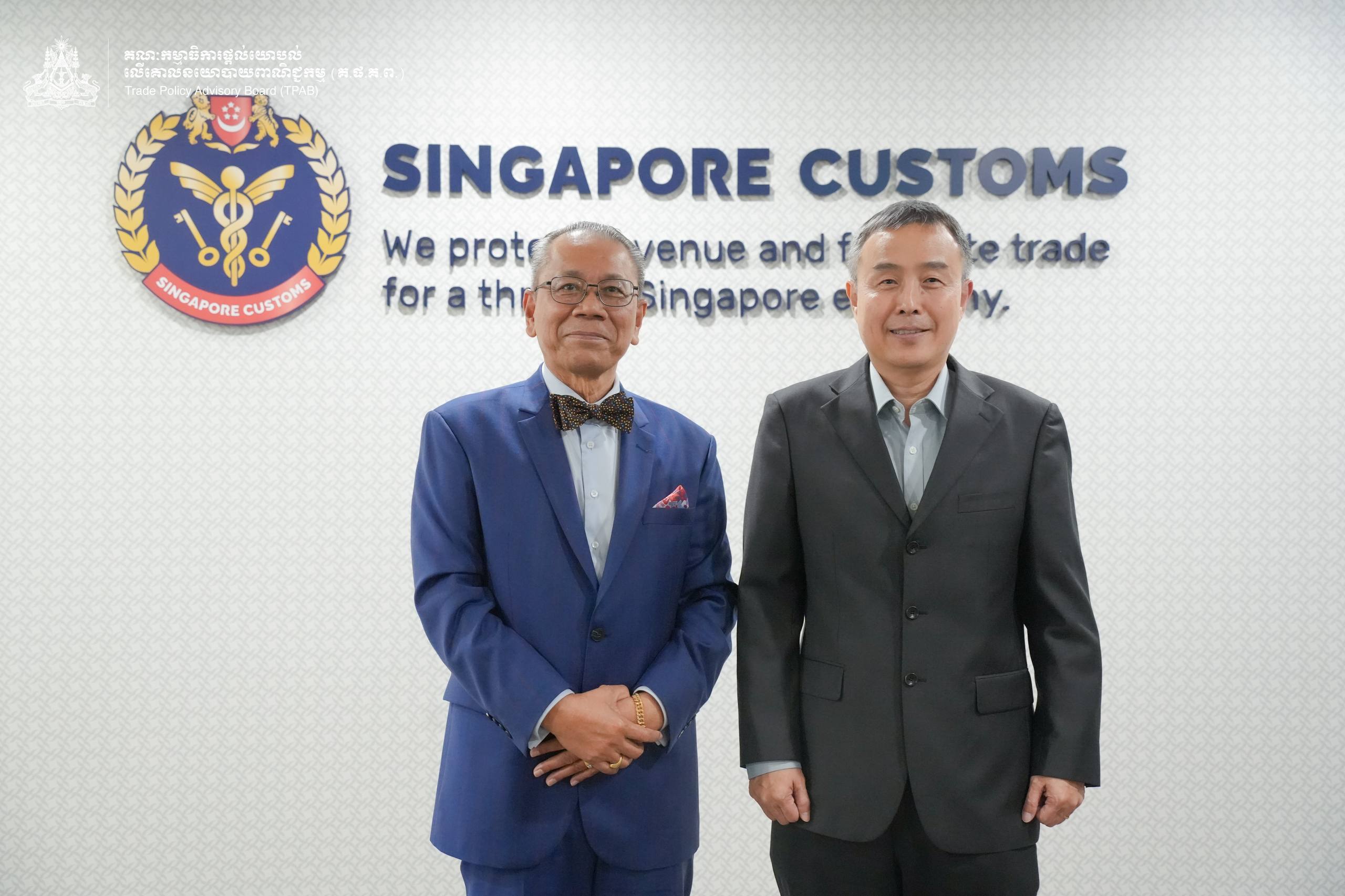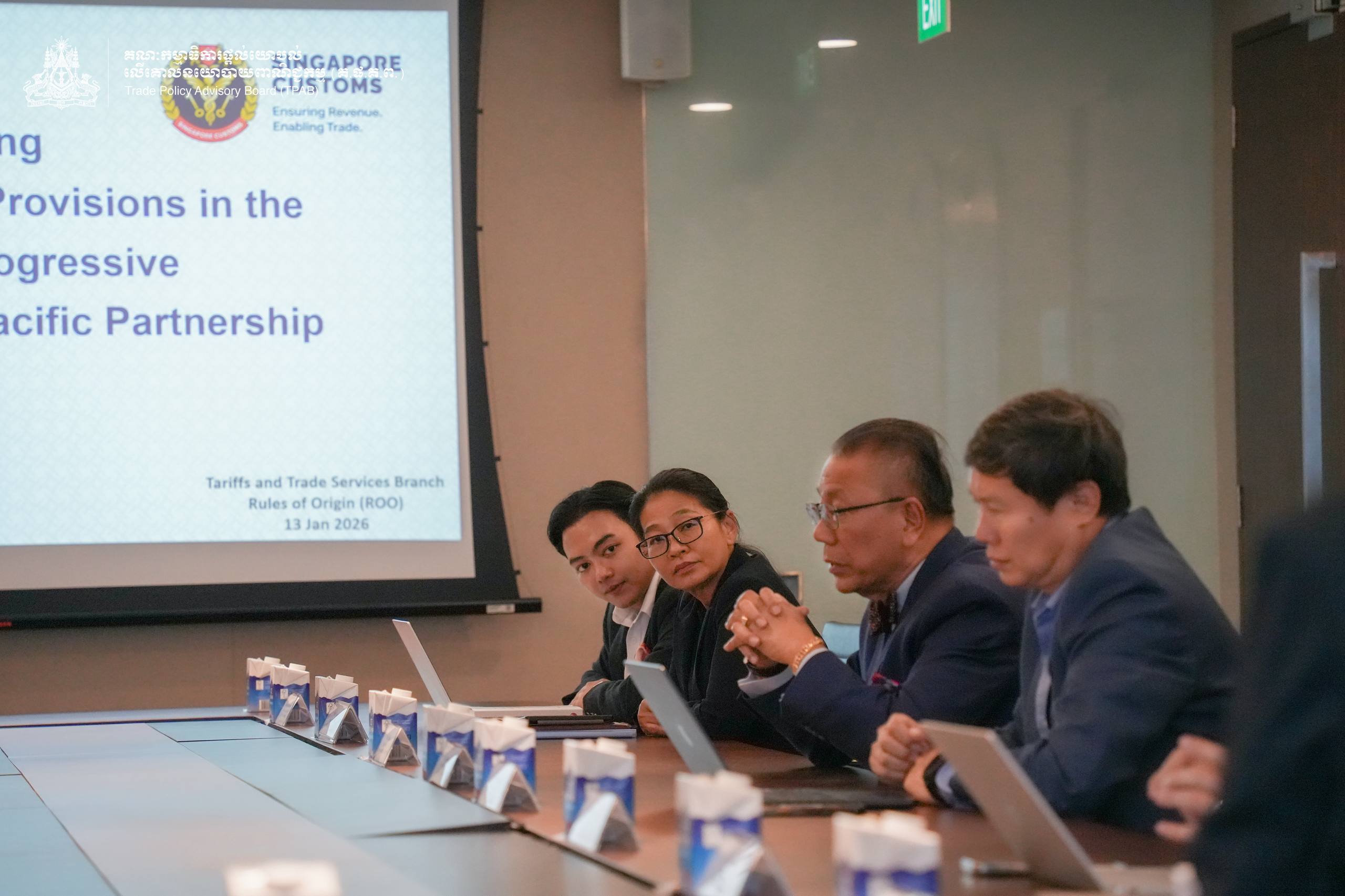 On 13 January 2026, H.E. Prof. Bundit Sapheacha Dr. Sok Siphana, Senior Minister in charge of Special Missions (Multilateral Trade and Economic Affairs), Chairman of the Trade Policy Advisory Board (TPAB), and Chairman of the Comprehensive and Progressive Agreement for Trans-Pacific Partnership (CP-TPP) Study Working Group, held a working session with Mr. TAN Hung Hooi, Director-General of Singapore Customs.