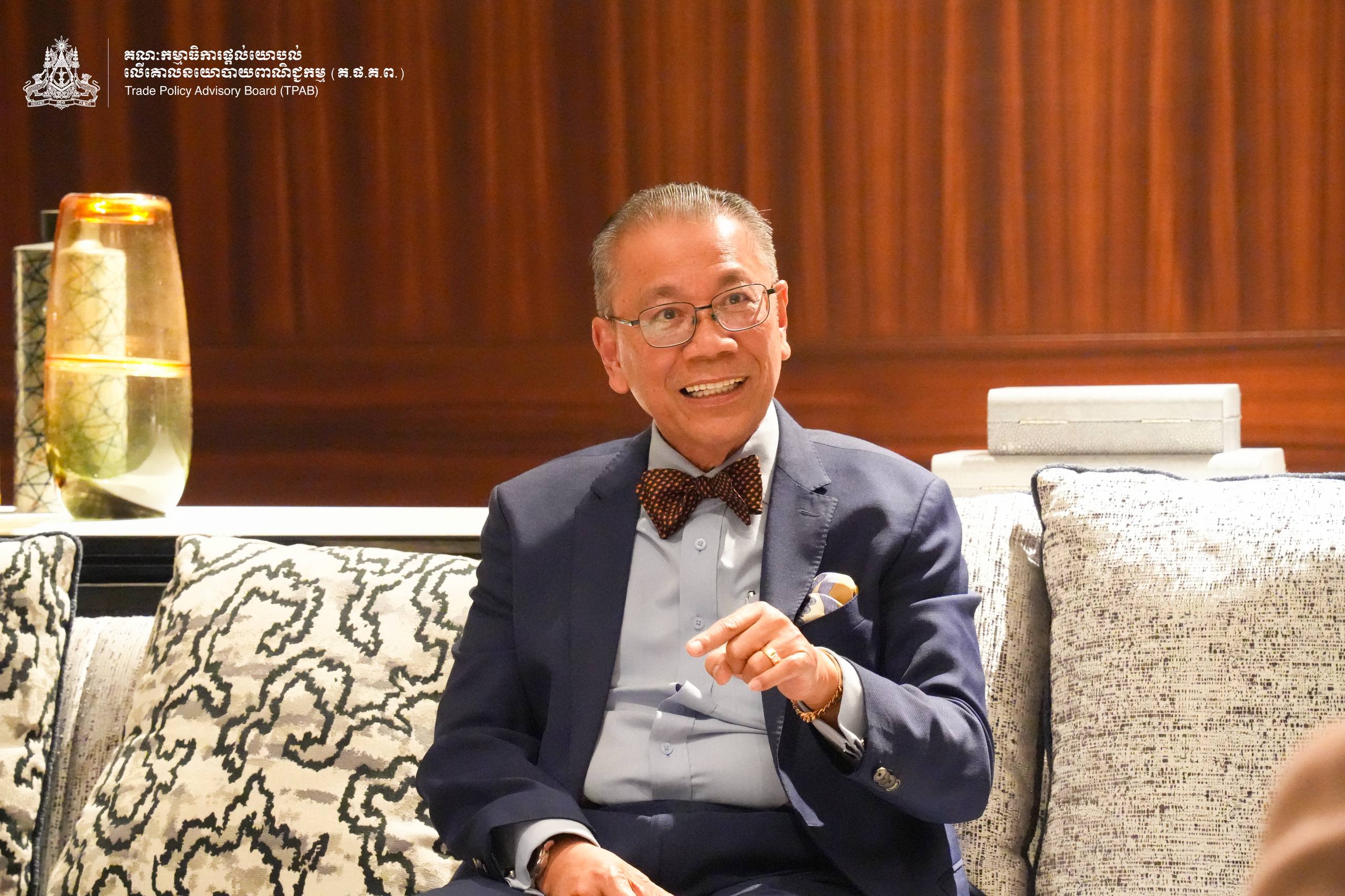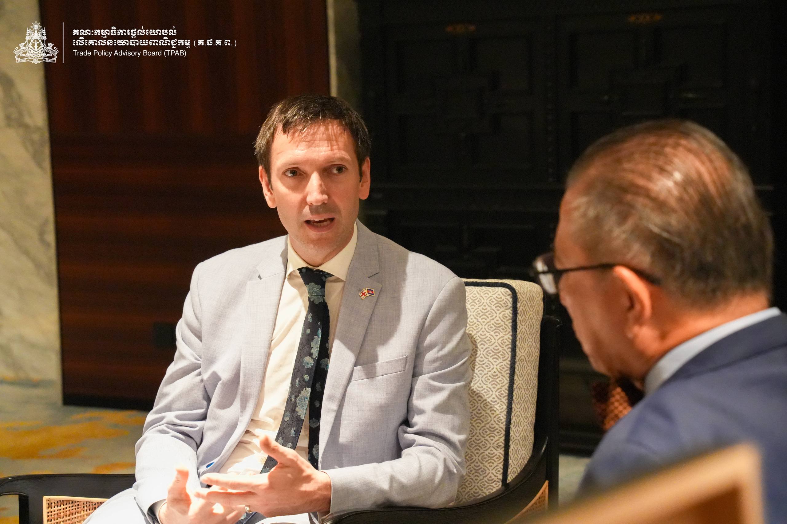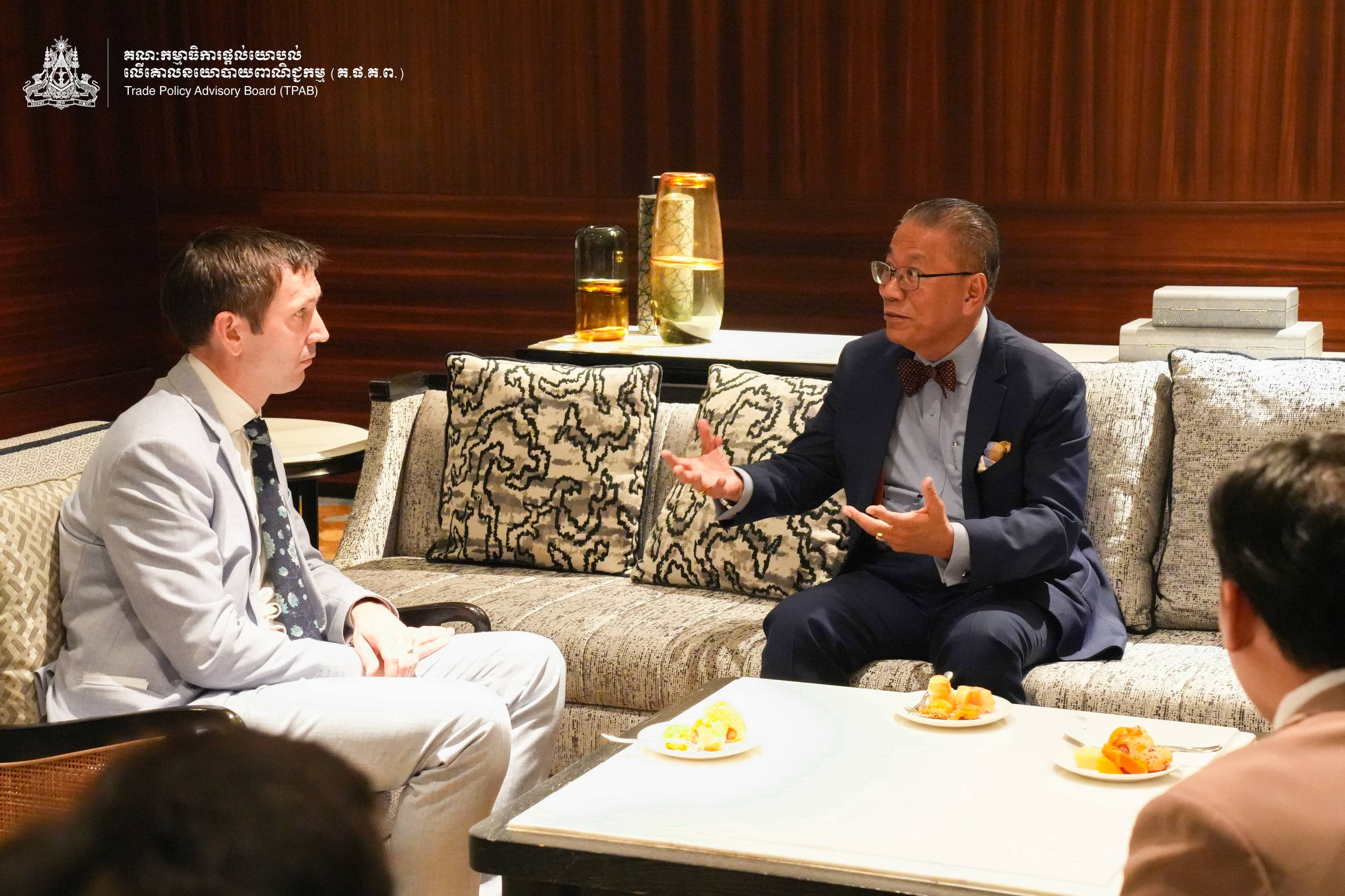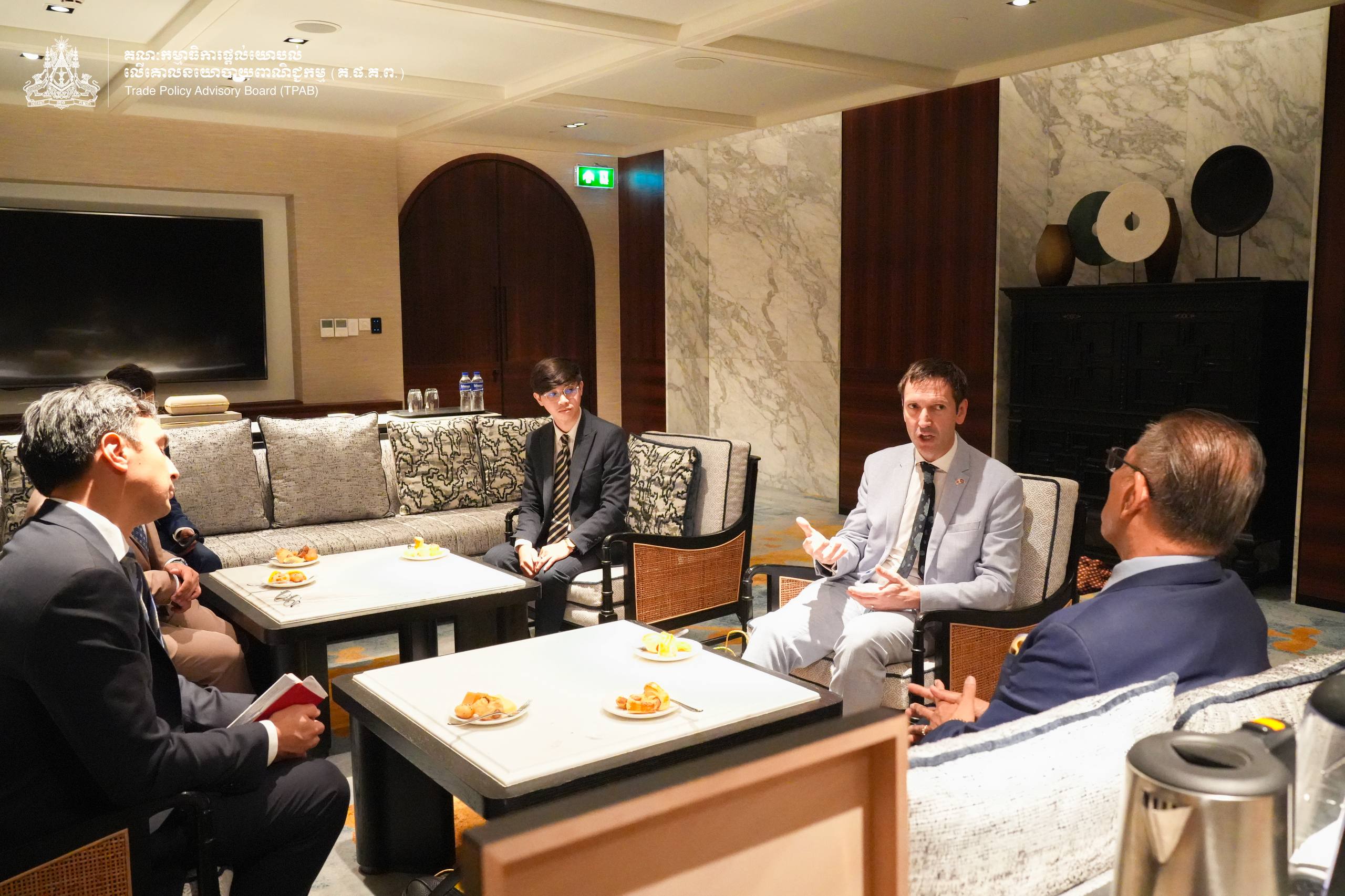 On the margin of the Official Launch of the Report on “The Regulatory Gap Analysis of Selected Trade Agreement Chapters to Support Cambodia’s LDC and Trade Transition”, on April 24, 2026, H.E. Prof. Bundit Sapheacha Dr. Sok Siphana, Senior Minister in charge of Special Missions (Multilateral Trade and Economic Affairs), Chairman of the Trade Policy Advisory Board (TPAB), and Chairman of the Comprehensive and Progressive Agreement for Trans-Pacific Partnership (CP-TPP) Study Working Group, held a bilateral meeting with H.E. Dominic Williams, British Ambassador to the Kingdom of Cambodia alongside Mr. Kenn Especkerman-True, Regional Director in Economic and Trade Policy for Southeast Asia at the Foreign, Commonwealth and Development Office of the United Kingdom.