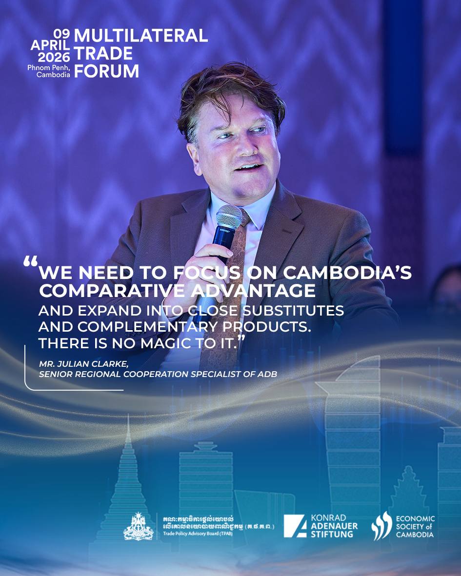 Mr. Julian Clarke, Senior Regional Cooperation Specialist of ADB, highlighted a practical roadmap for Cambodia’s trade expansion: