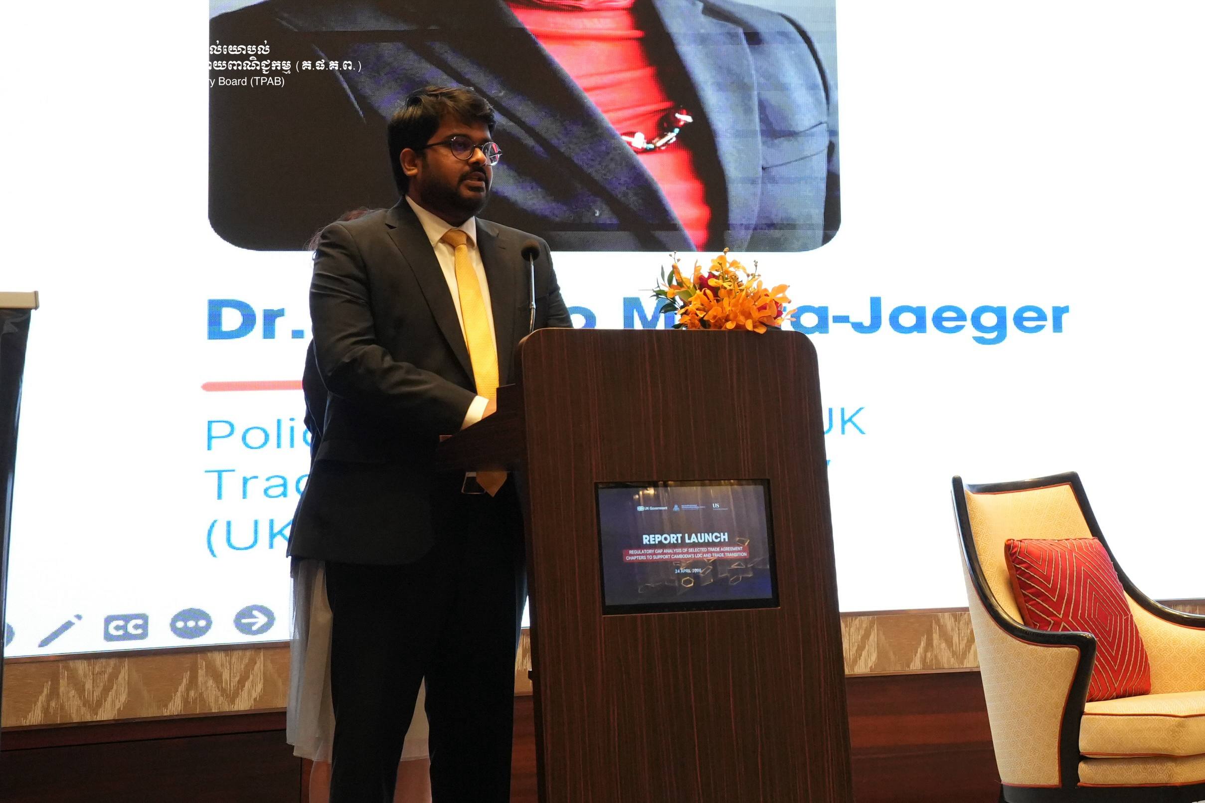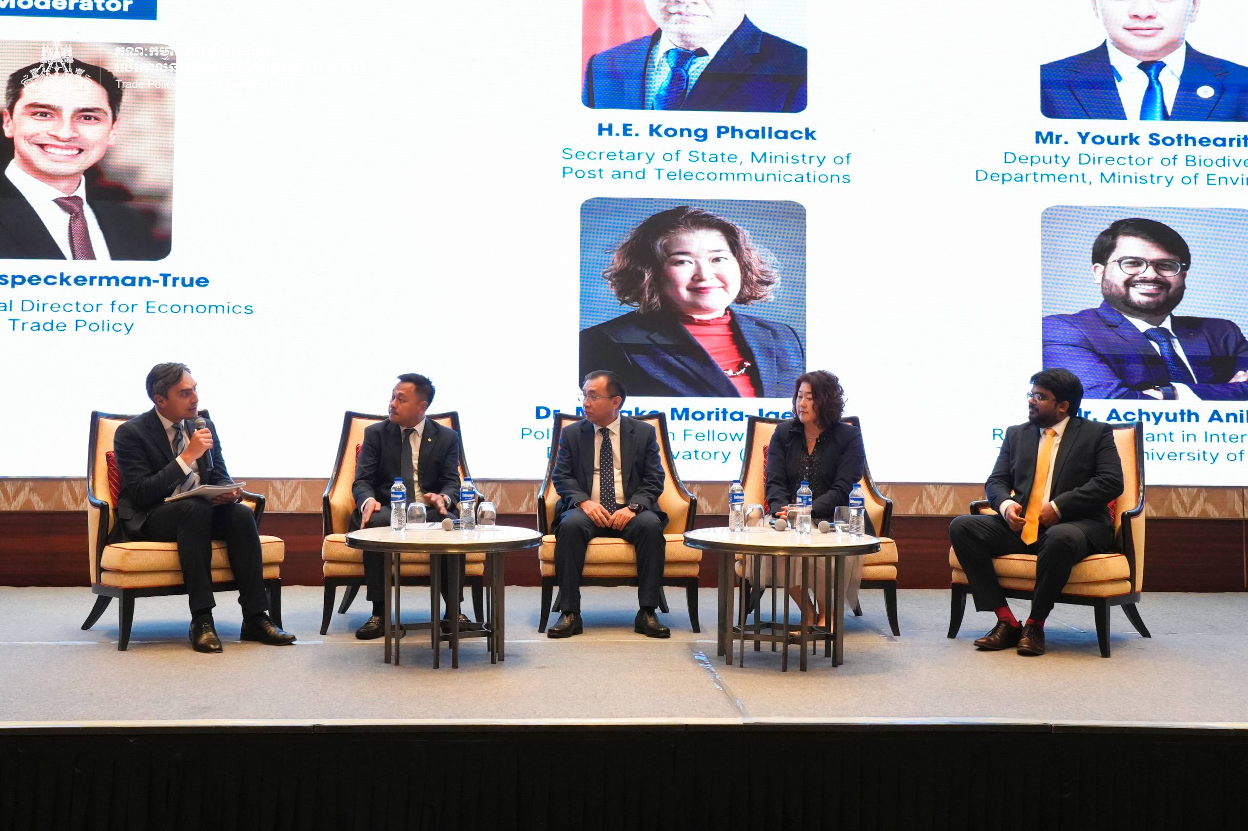 Following the presentation, a panel discussion moderated by Mr. Kenn Especkerman-True, Regional Director in Economic and Trade Policy for Southeast Asia at the Foreign, Commonwealth and Development Office of the United Kingdom, explored the report’s practical implications. Panelists included H.E. Kong Phallack, Secretary of State of the Ministry of Post and Telecommunications, and Mr. Yourk Sothearith, Deputy Director of the Biodiversity Department at the Ministry of Environment, shared insights on the opportunities and challenges associated with aligning Cambodia’s legal and institutional framework with the high-standard requirements of the CP-TPP across areas including digital economy governance, environmental regulation, and human capacity development.